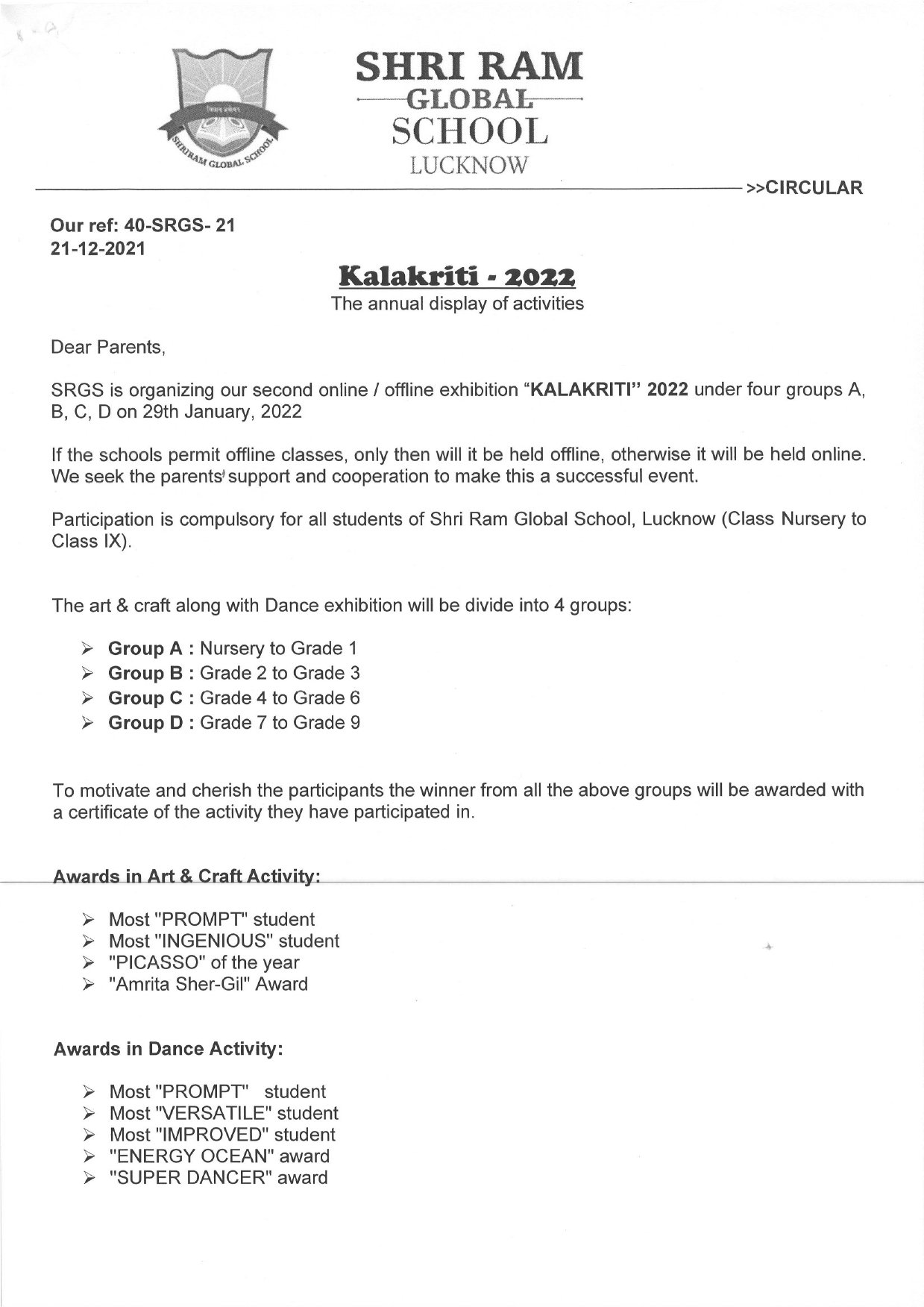 Shri Ram Global School, Lucknow : CBSE Affiliation Number - 2133776 MANDATORY PUBLIC DISCLOSURE